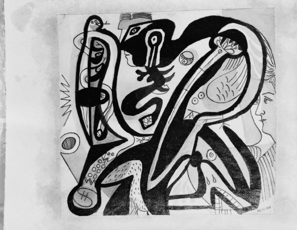 Montréal - Atelier Alfred Pellan - Composition, [1946], Archives nationales à Québec, Fonds ministère de la Culture et des Communications, (03Q,E6,S8,SS1,SSS543,D2034), Gérard Morisset.