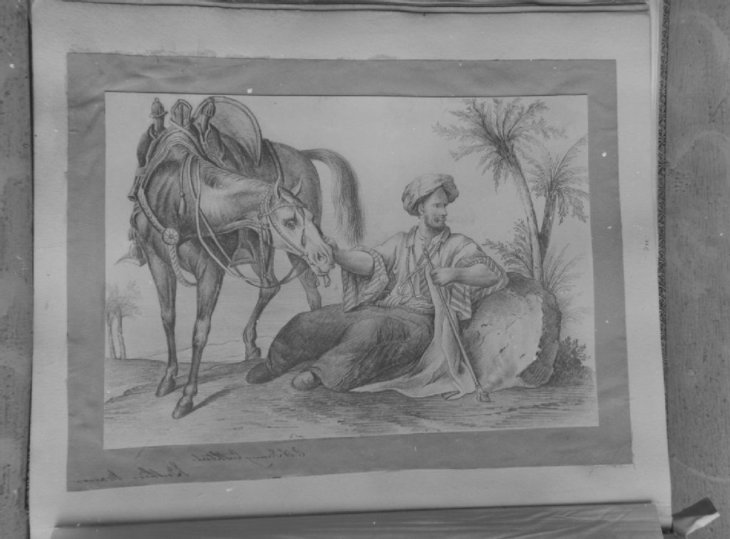 Montréal - Bibliothèque municipale, Album Viger - Cavalier turc au repos, dessin au crayon de Jenny Cuthbert