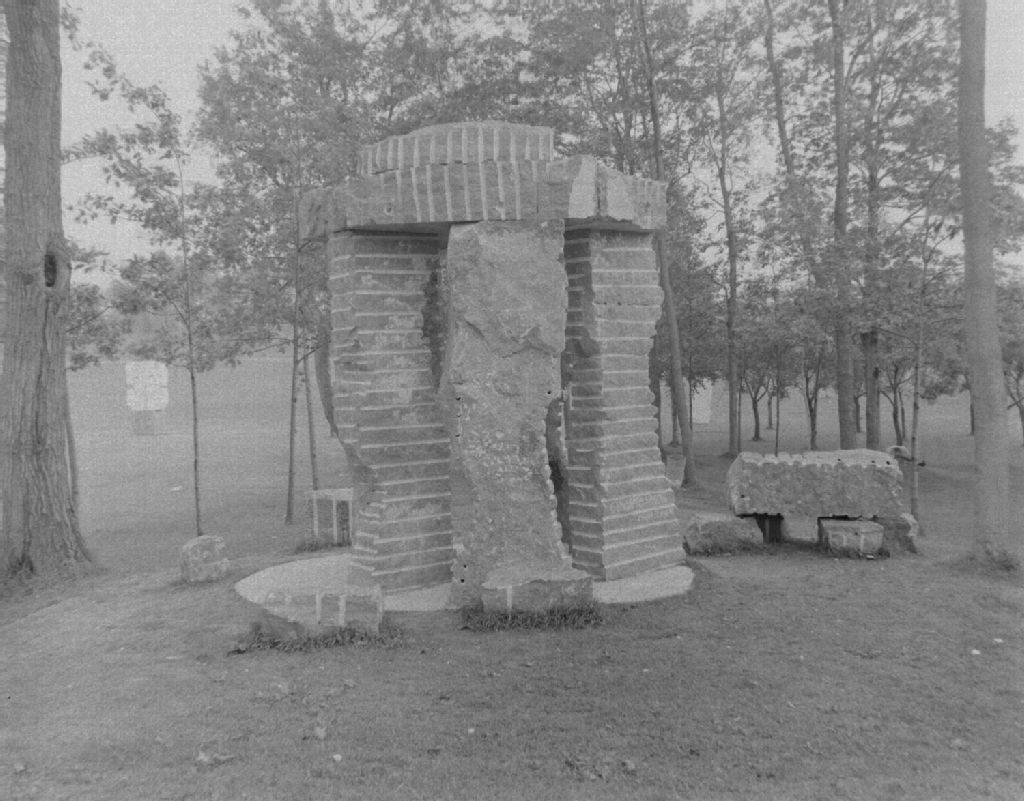Montréal, Île de Montréal - Centre d'art du Mont-Royal, Symposium international de sculpture de 1964 - Oeuvre de Louis Chavignier, [1964], Archives nationales à Québec, Fonds ministère de la Culture et des Communications, (03Q,E6,S8,SS1,SSS557,D2249), Laval Bouchard.