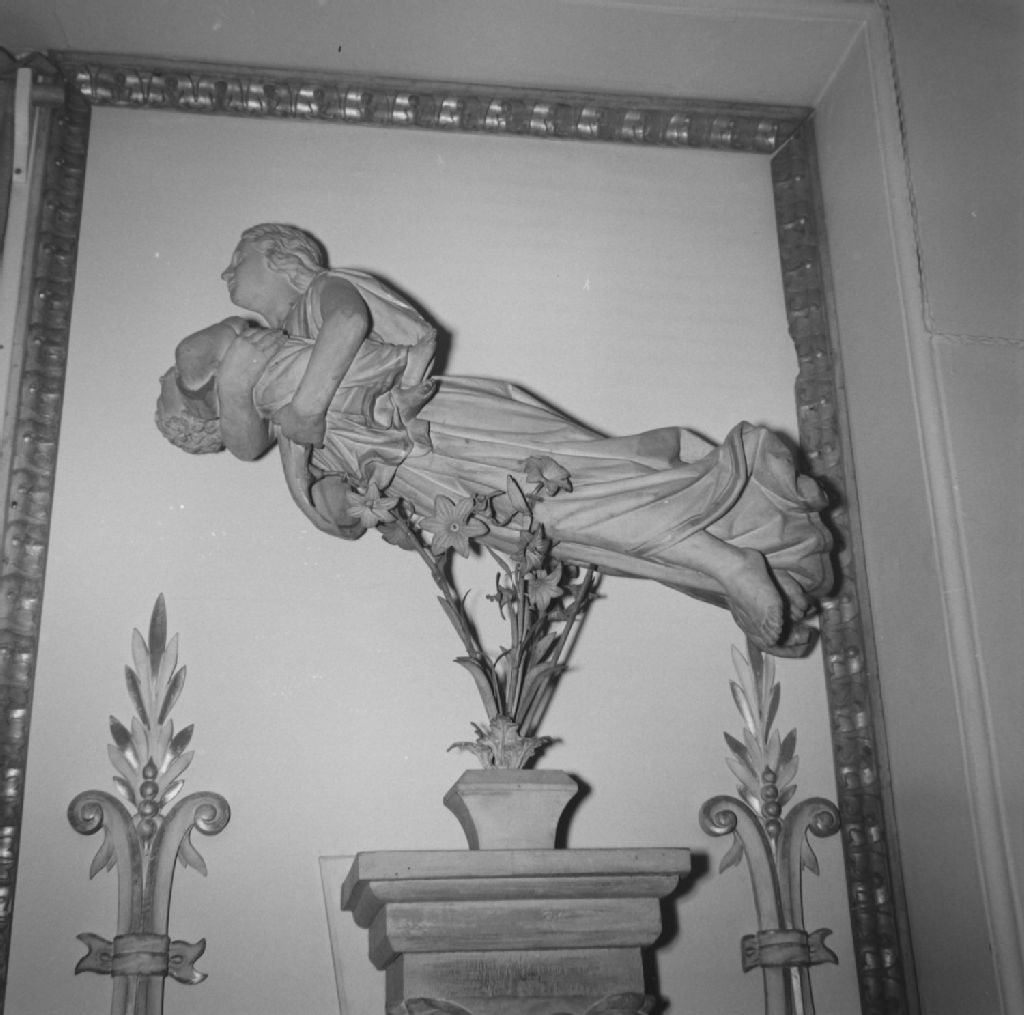 Montréal, Île de Montréal - Château Ramezay - Ange gardien emportant un enfant au ciel, en bois sculpté et décapé, [1956], Archives nationales à Québec, Fonds ministère de la Culture et des Communications, (03Q,E6,S8,SS1,SSS566,D2337), Jean-Paul Morisset.