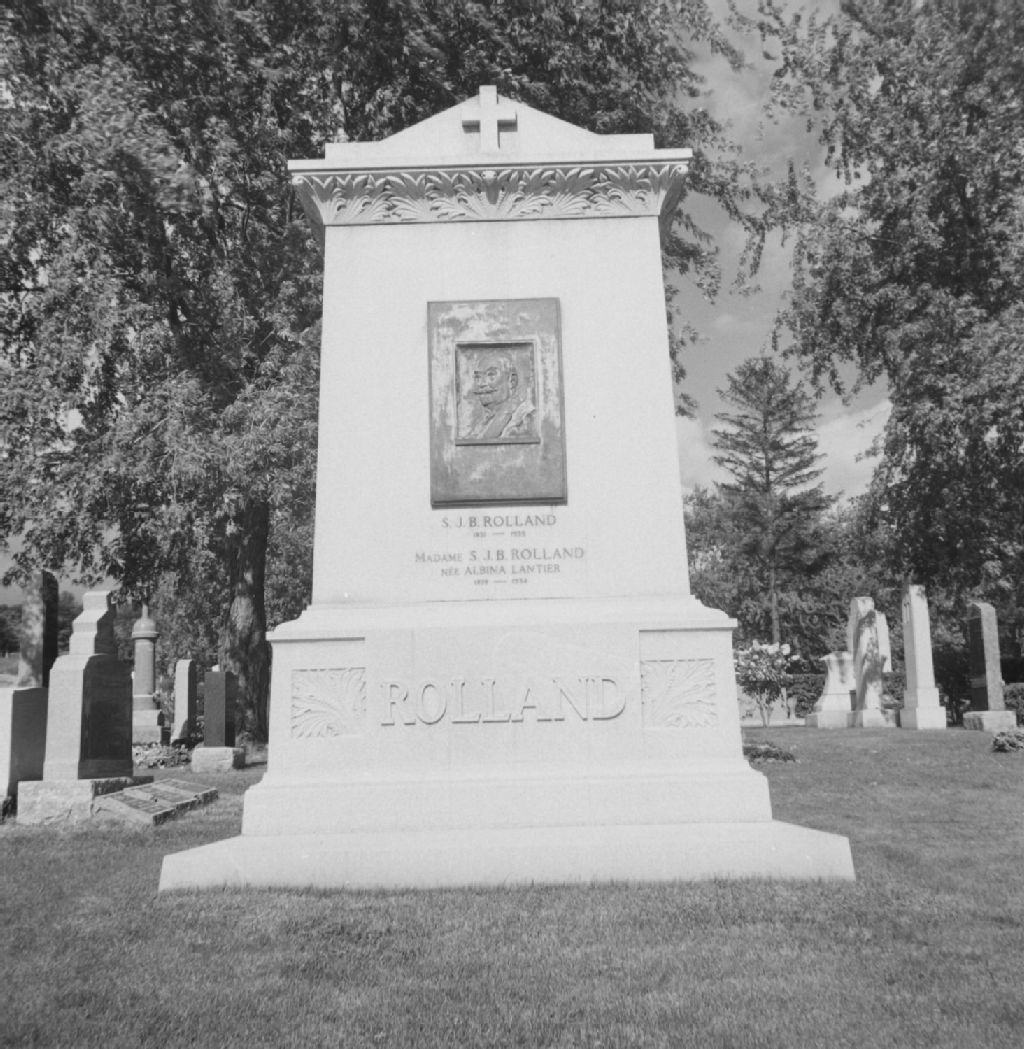 Montréal, Île de Montréal - Cimetière Côte-des-Neiges - Monument S. J. B. Rolland par Henri Hébert, [1950], Archives nationales à Québec, Fonds ministère de la Culture et des Communications, (03Q,E6,S8,SS1,SSS569,D2455), Gérard Morisset.