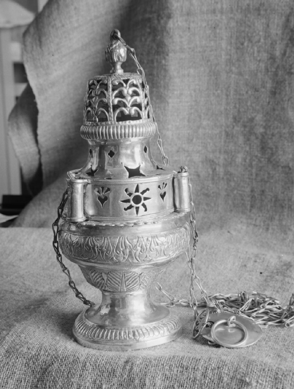 Montréal, Île de Montréal - Collection Birks - Encensoir en argent. Façonné vers 1780 par François Ranvoyzé, [1940], Archives nationales à Québec, Fonds ministère de la Culture et des Communications, (03Q,E6,S8,SS1,SSS574,D2529), Jules Bazin.