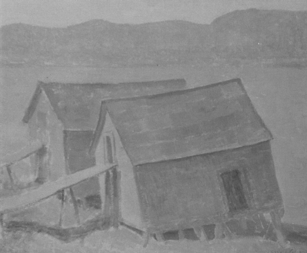 Montréal, Île de Montréal - Collection Jacques Mélançon - Cabane de pêcheurs à Barachois de Malbaie., [Vers 1950], Archives nationales à Québec, Fonds ministère de la Culture et des Communications, (03Q,E6,S8,SS1,SSS582,D2621), Jules Bazin.