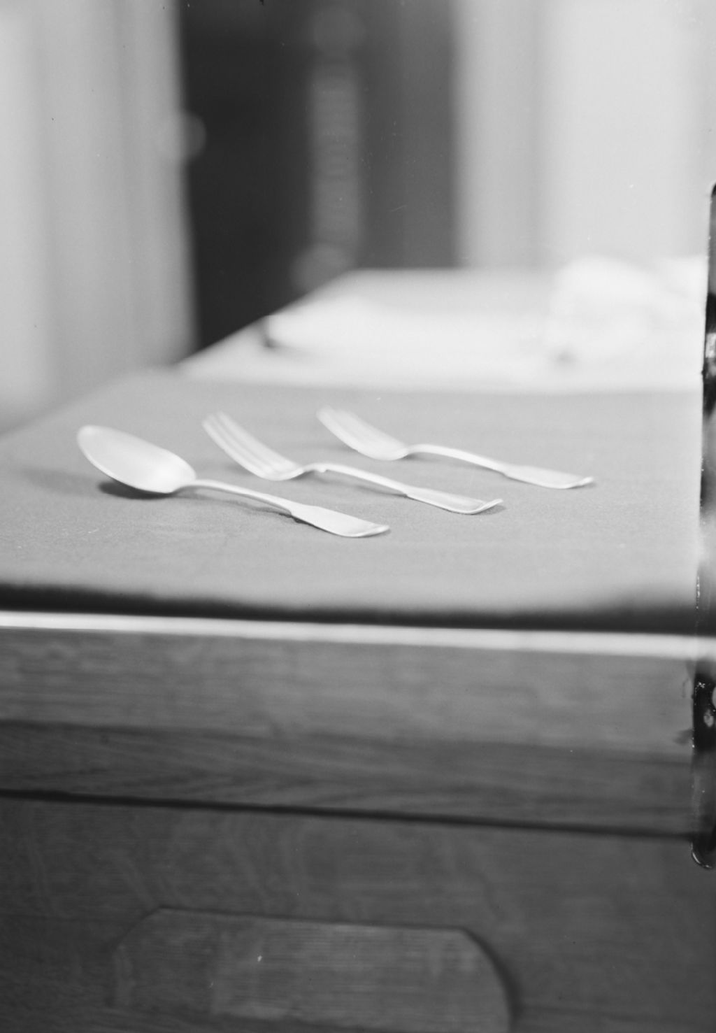 Montréal, île de Montréal - Hôpital Hôtel-Dieu - Ustensiles en argent, [Vers 1950], Archives nationales à Québec, Fonds ministère de la Culture et des Communications, (03Q,E6,S8,SS1,SSS633,D2944), Laboratoire TAVI.