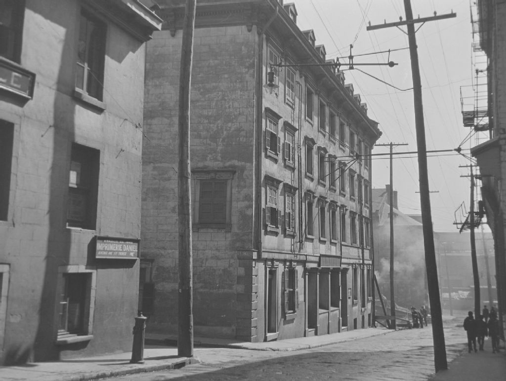 Montréal, île de Montréal - Maisons rue Saint-Gabriel - Hôtel du Peuple, [Vers 1950], Archives nationales à Québec, Fonds ministère de la Culture et des Communications, (03Q,E6,S8,SS1,SSS650,D3569), Edgar Gariépy.