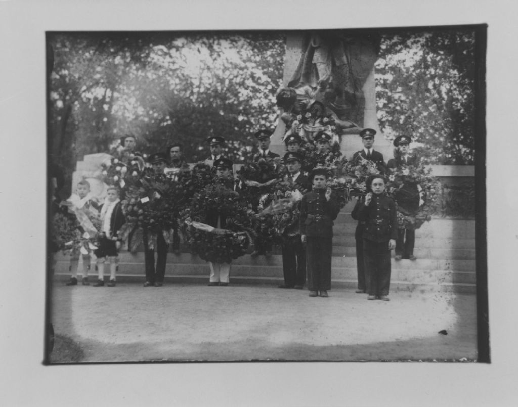 Montréal, île de Montréal - Monuments - Fête au monument de Dollard, [Vers 1950], Archives nationales à Québec, Fonds ministère de la Culture et des Communications, (03Q,E6,S8,SS1,SSS654,D3659.1), Gérard Morisset.