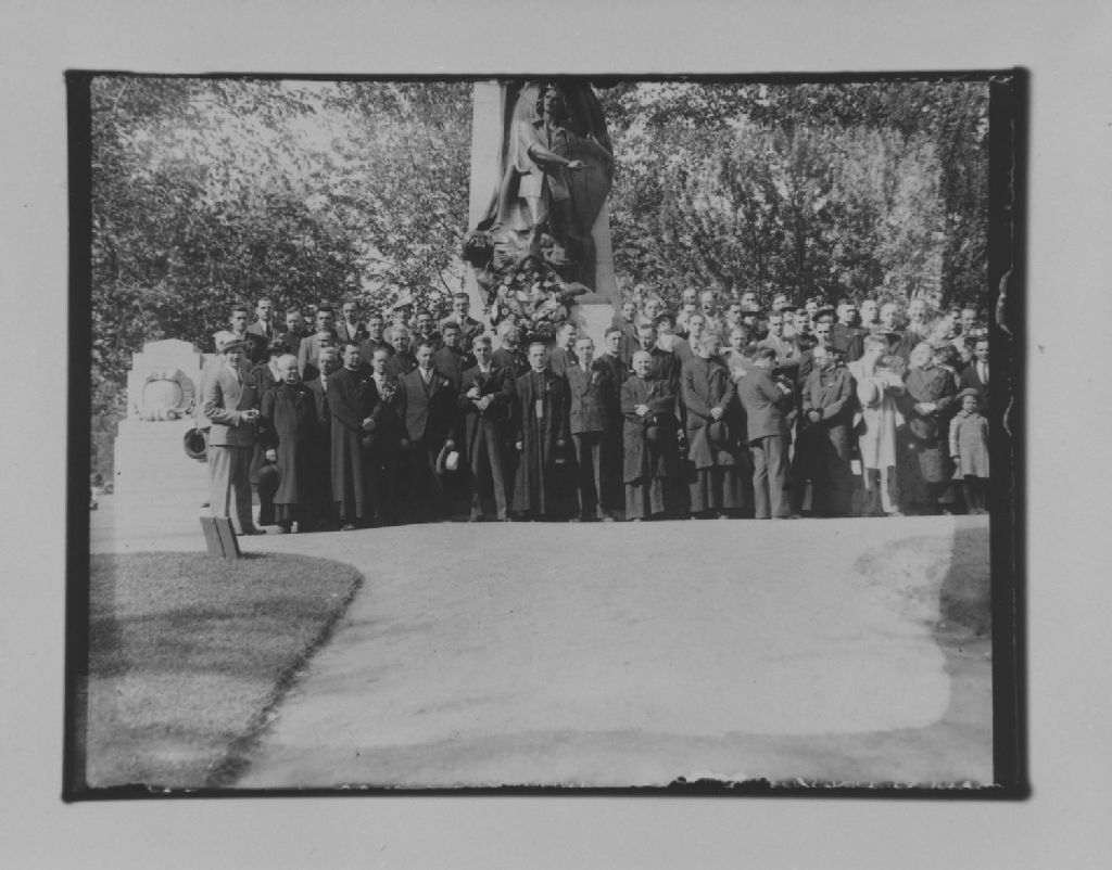 Montréal, île de Montréal - Monuments - Fête au monument de Dollard, [Vers 1950], Archives nationales à Québec, Fonds ministère de la Culture et des Communications, (03Q,E6,S8,SS1,SSS654,D3659.2), Gérard Morisset.