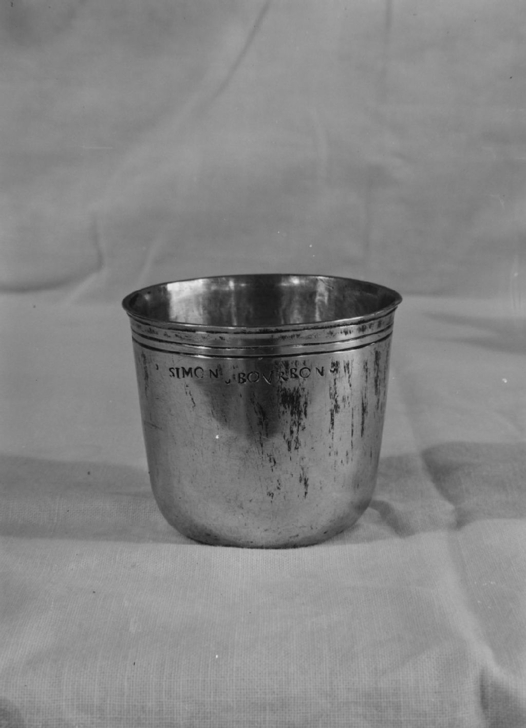 Montréal, île de Montréal - Musée Notre-Dame - Gobelet en argent massif marqué au long SIMON BOURBON, [1944], Archives nationales à Québec, Fonds ministère de la Culture et des Communications, (03Q,E6,S8,SS1,SSS659,D3891), Gérard Morisset.