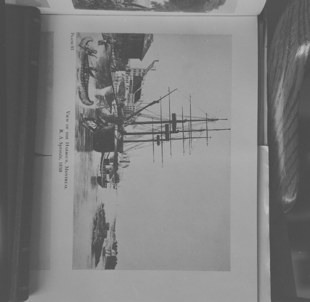 Montréal. Île de Montréal - Vues - Le port de Montréal en 1830, 1963, Archives nationales à Québec, Fonds ministère de la Culture et des Communications, (03Q,E6,S8,SS1,SSS708,D4311), Gérard Morisset.