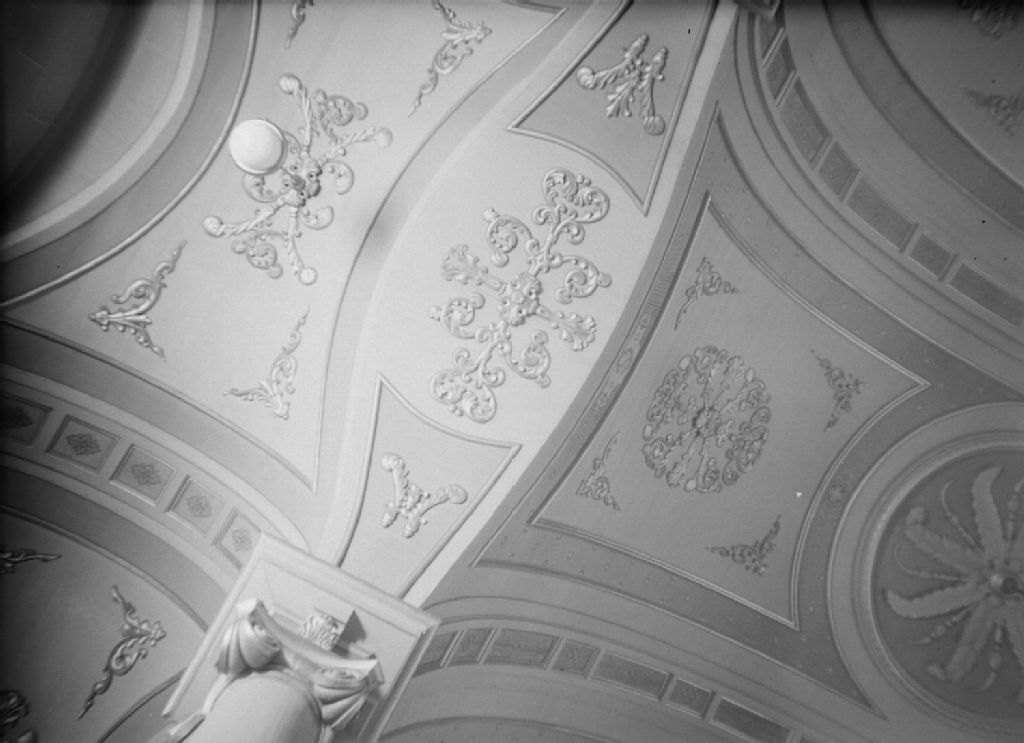 Pierrefonds. Île de Montréal - Église Sainte-Geneviève - Sculptures de la voûte, Vers 1950, Archives nationales à Québec, Fonds ministère de la Culture et des Communications, (03Q,E6,S8,SS1,SSS717,D4417), Photographe non identifié.