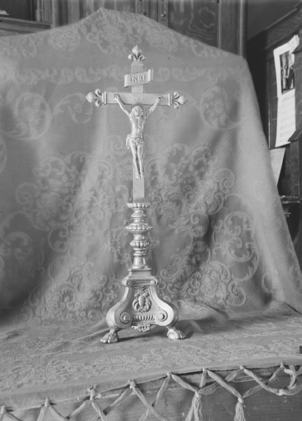 Pointe-Claire. Île de Montréal - Église - Crucifix d'autel en bois sculpté et doré, Vers 1950, Archives nationales à Québec, Fonds ministère de la Culture et des Communications, (03Q,E6,S8,SS1,SSS723,D4479), Photographe non identifié.