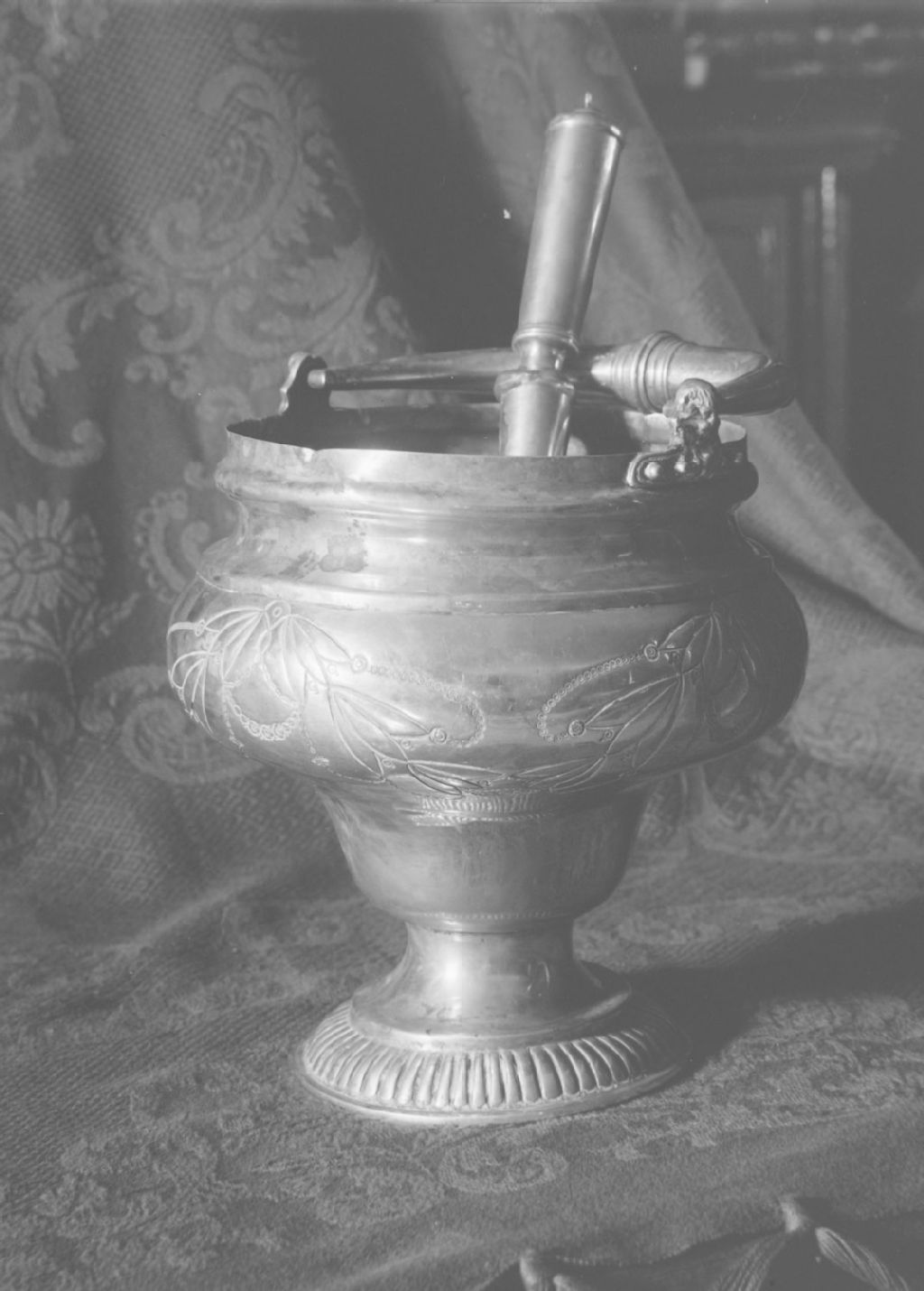 Pointe-Claire. Île de Montréal - Église - Bénitier en argent massif, Vers 1950, Archives nationales à Québec, Fonds ministère de la Culture et des Communications, (03Q,E6,S8,SS1,SSS723,D4483), Photographe non identifié.