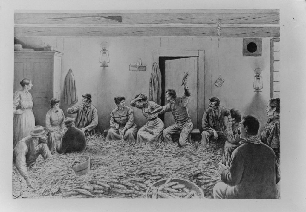 Sault-au-Récollet. Île de Montréal - Collection Massicotte - Épluchette de blé d'Inde