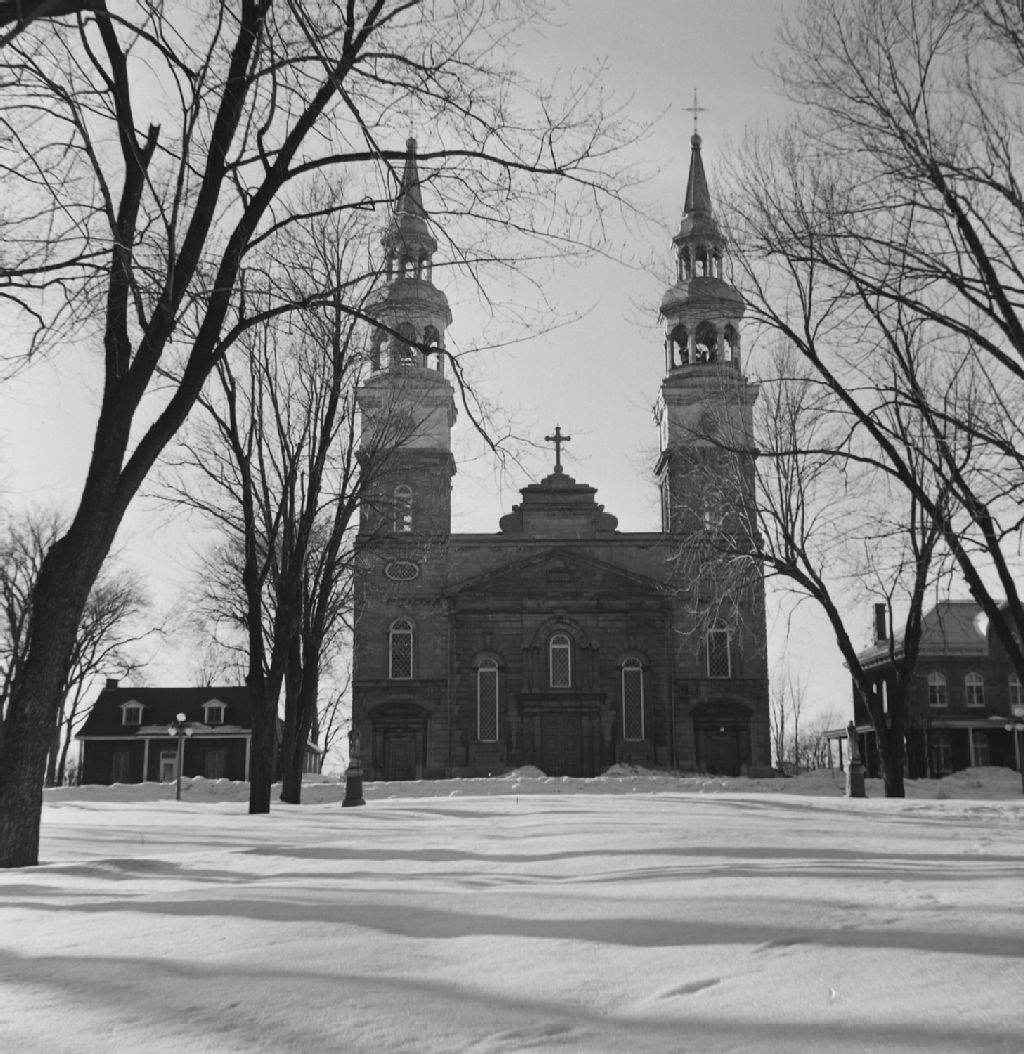 Sault-au-Récollet. Île de Montréal - Église - Façade, Vers 1947-1950, Archives nationales à Québec, Fonds ministère de la Culture et des Communications, (03Q,E6,S8,SS1,SSS744,D4601), Edgar Gariépy, Gérard Morisset.