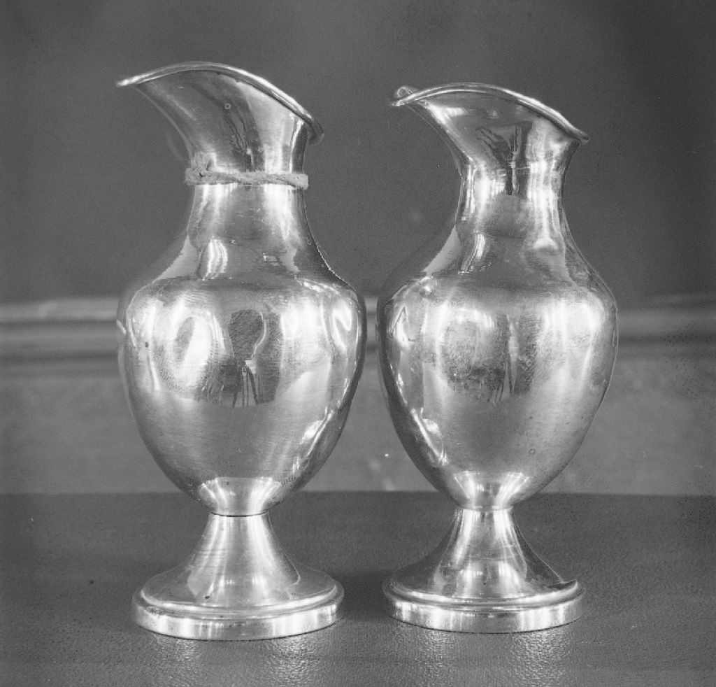 Rivière-Ouelle, Kamouraska - Église - Burettes en argent massif sans couvercle, 1943, Archives nationales à Québec, Fonds ministère de la Culture et des Communications, (03Q,E6,S8,SS1,SSS818,D5126), Gérard Morisset.