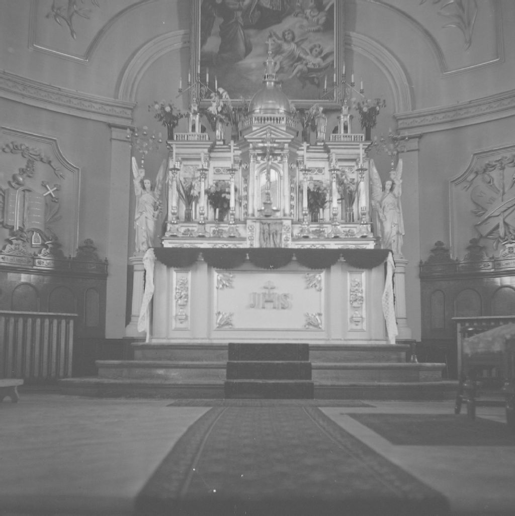 Saint-Philippe-de-Néri, Kamouraska - Église - Intérieur, 1947, Archives nationales à Québec, Fonds Ministère de la Culture et des Communications, (03Q,E6,S8,SS1,SSS836,D5211), Gérard Morisset.
