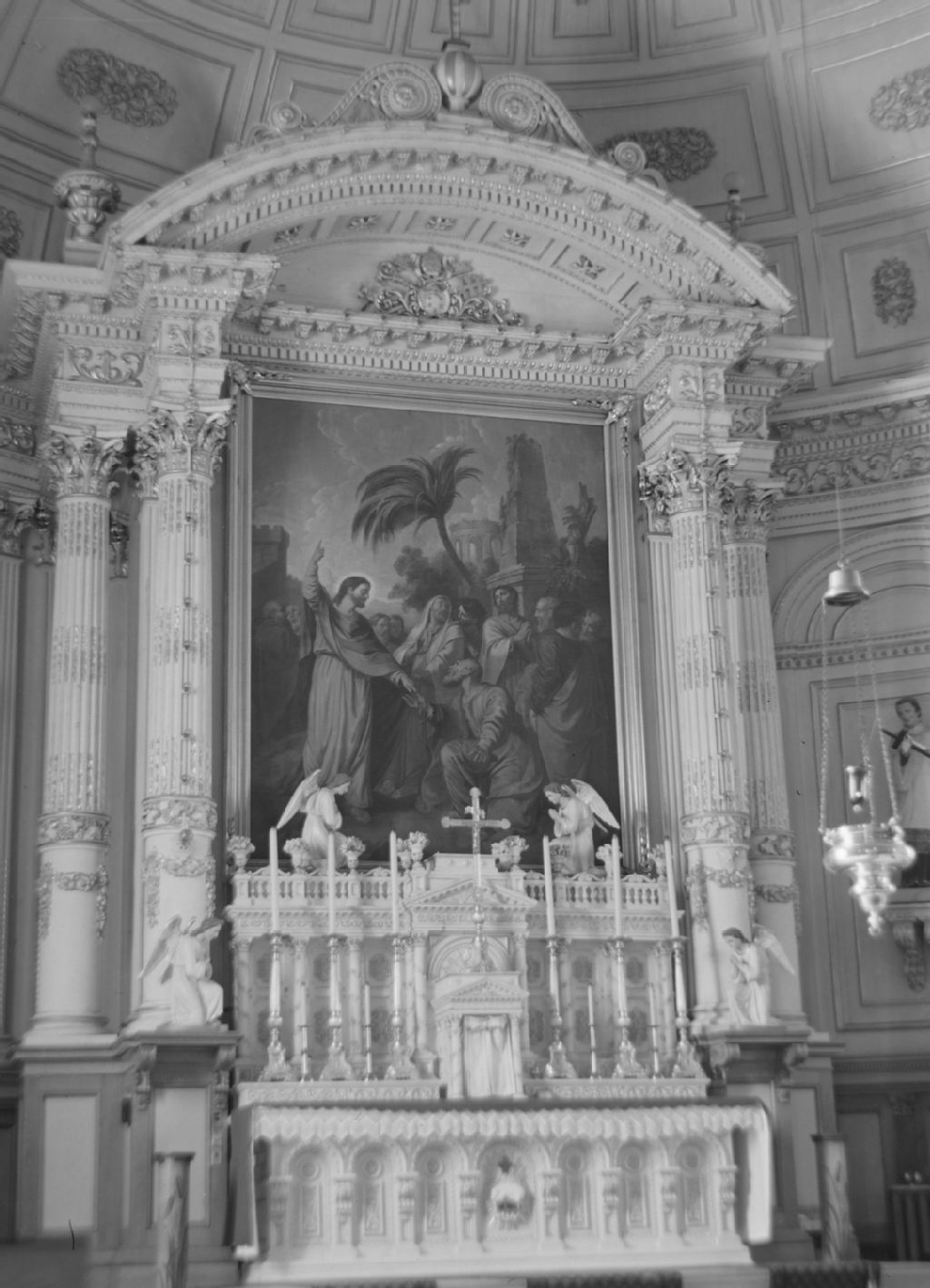 L'Assomption, L'Assomption - Église - Retable central et maître-autel en bois sculpté, 1938, Archives nationales à Québec, Fonds Ministère de la Culture et des Communications, (03Q,E6,S8,SS1,SSS888,D5459), Jules Bazin, Gérard Morisset.