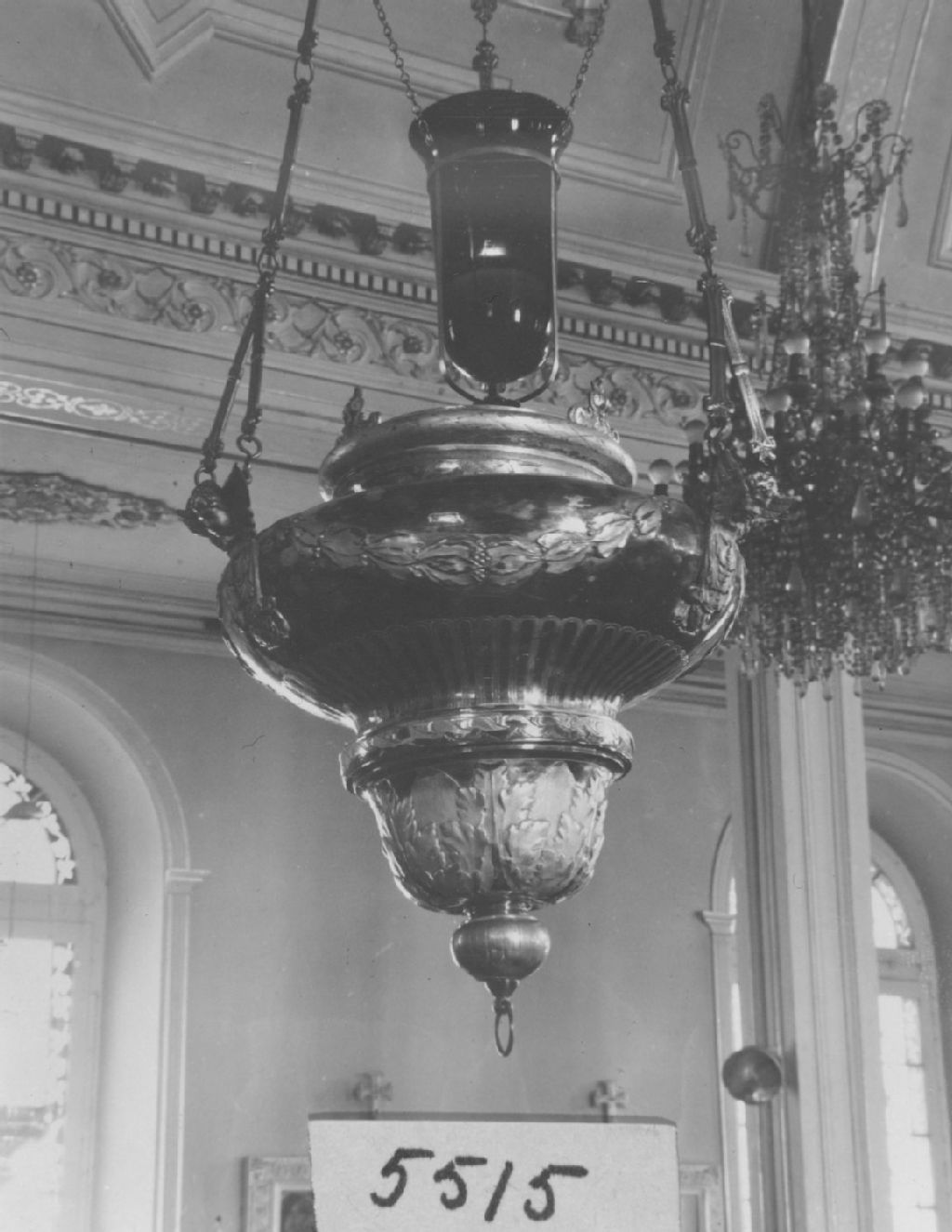 Repentigny, L'Assomption - Église - Lampe de sanctuaire en argent, Vers 1943-1950, Archives nationales à Québec, Fonds Ministère de la Culture et des Communications, (03Q,E6,S8,SS1,SSS898,D5515), Jules Bazin et Gérard Morisset.