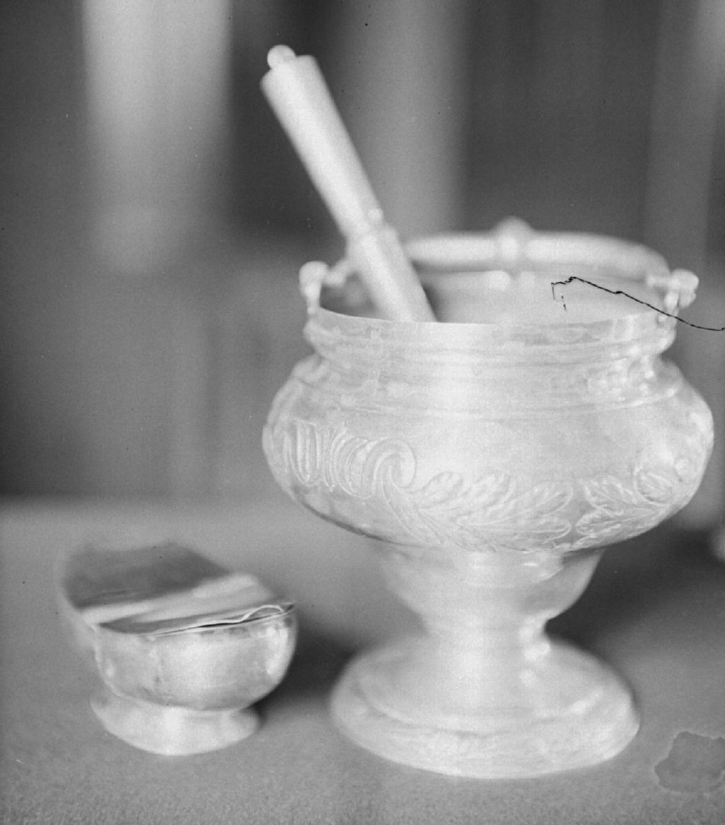 Saint-Roch-de-l'Achigan, L'Assomption - Église - Bénitier, Vers 1950, Archives nationales à Québec, Fonds ministère de la Culture et des Communications, (03Q,E6,S8,SS1,SSS905,D5572), Photographe non identifié.