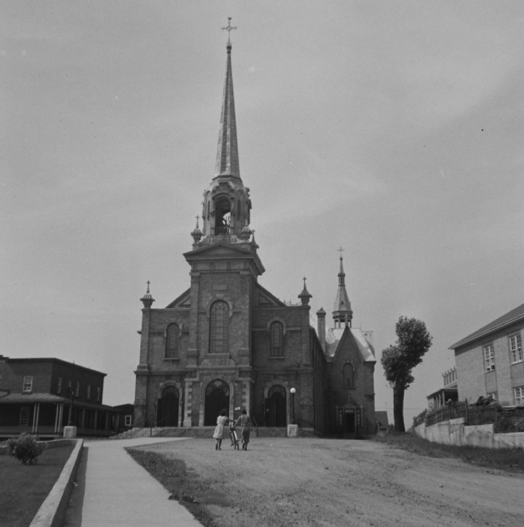 Charny, Lévis -Église - Façade frontale, 1947, Archives nationales à Québec, Fonds ministère de la Culture et des Communications, (03Q,E6,S8,SS1,SSS912,D5598), Gérard Morisset.