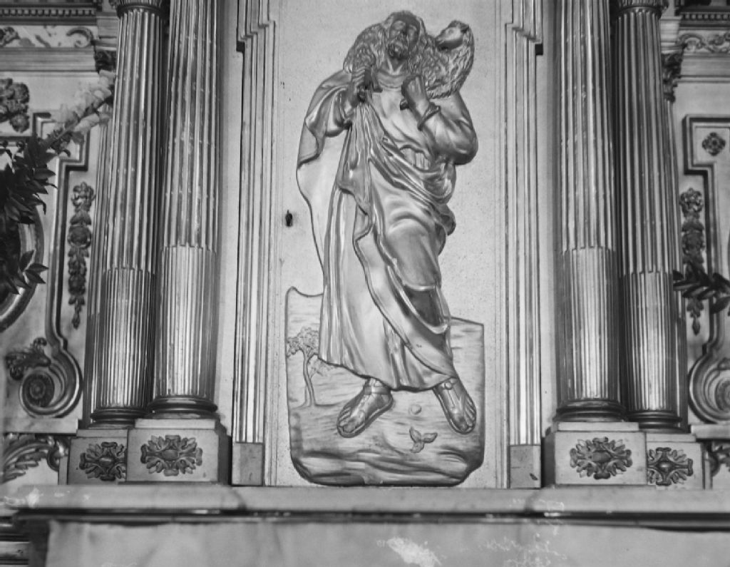 Lévis, Lévis - Église Notre-Dame - Bas-relief de la monstrance du tabernacle représentant le Bon Pasteur, 1950, Archives nationales à Québec, Fonds Ministère de la Culture et des Communications, (03Q,E6,S8,SS1,SSS932,D5744), Gérard Morisset.