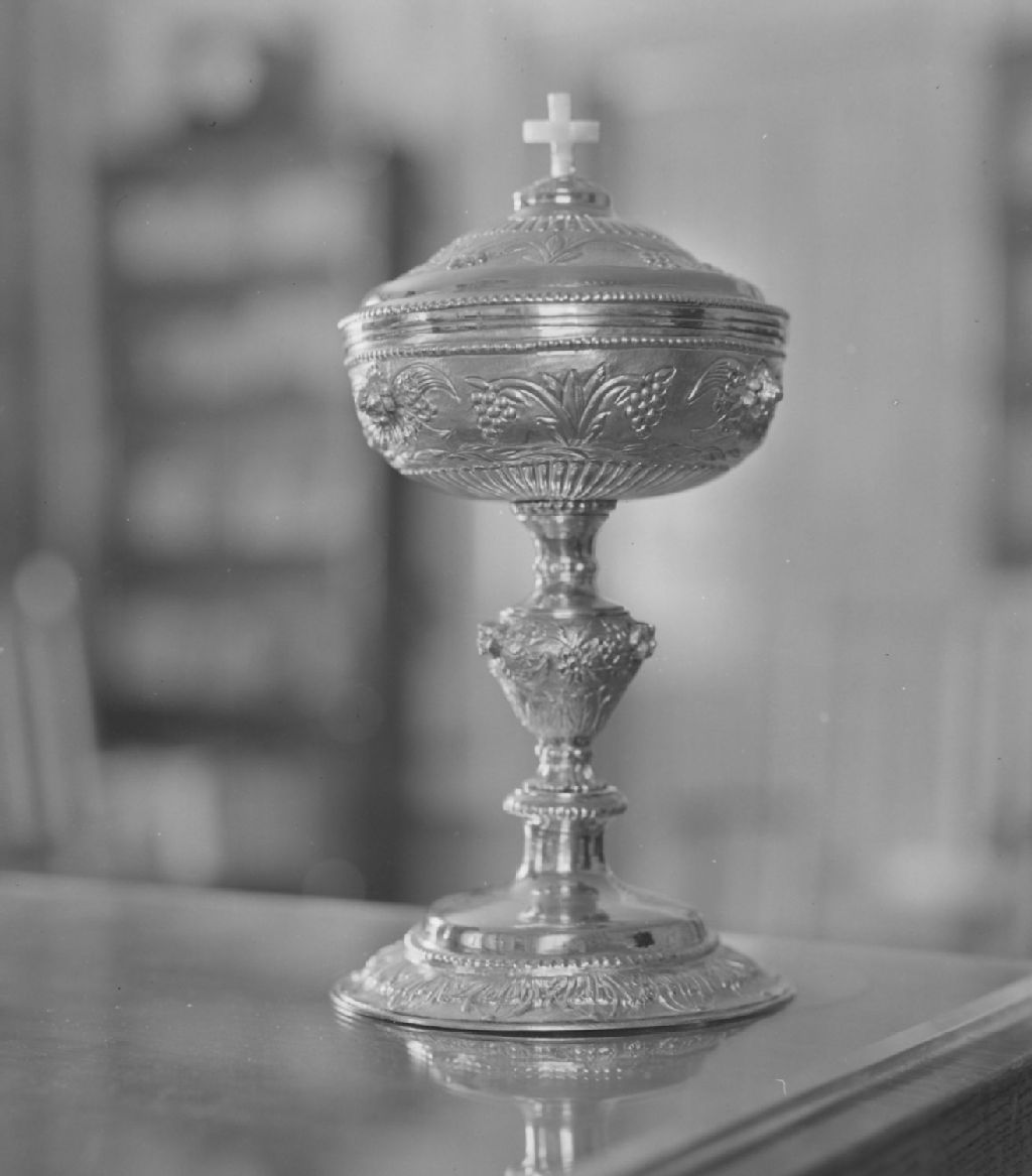 L'Islet, L'Islet - Église - Ciboire en or massif, 1945, Archives nationales à Québec, Fonds ministère de la Culture et des Communications, (03Q,E6,S8,SS1,SSS955,D5960), Gérard Morisset.