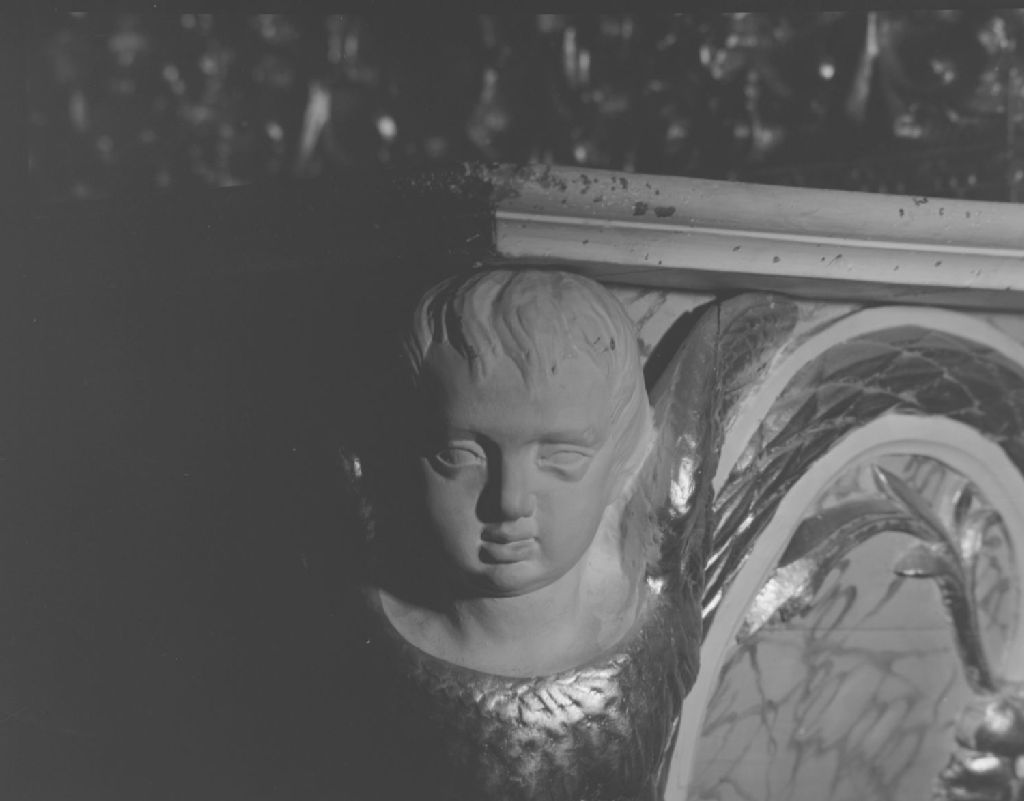 Saint-Jean-Port-Joli, L'Islet - Église - Tête d'ange du tombeau, à droite, 1965, Archives nationales à Québec, Fonds Ministère de la Culture et des Communications, (03Q,E6,S8,SS1,SSS965,D6051), Luc Chartier.