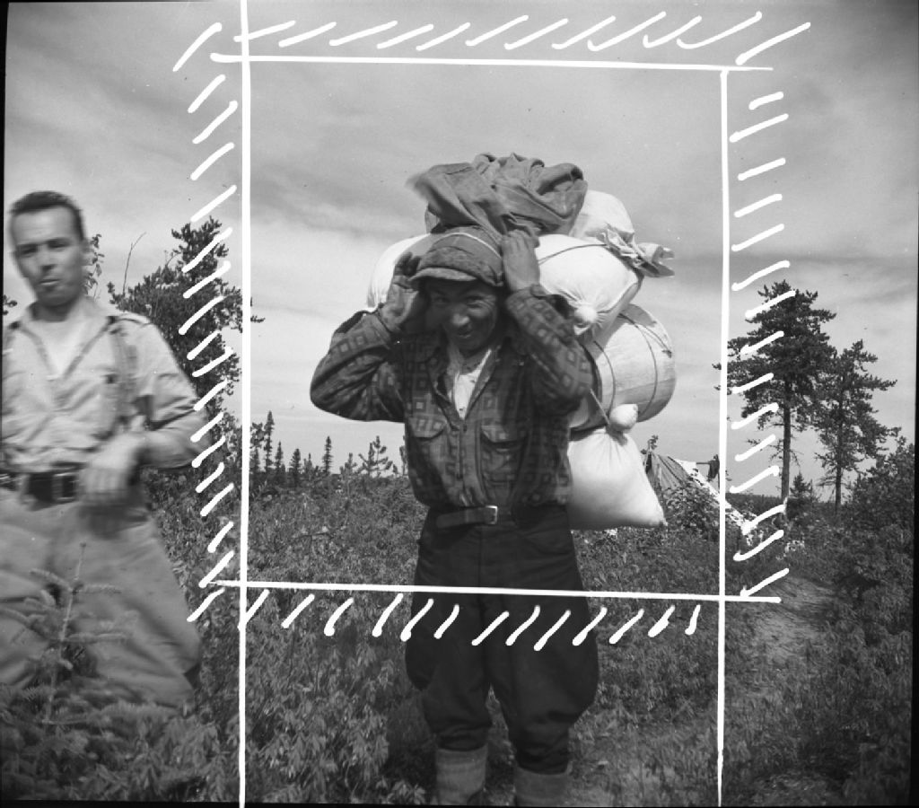 Un Montagnais et sa charge, [1942?], Archives nationales à Québec, Fonds Ministère de la Culture et des Communications, (03Q,E6,S9,P214A), Paul Provencher.