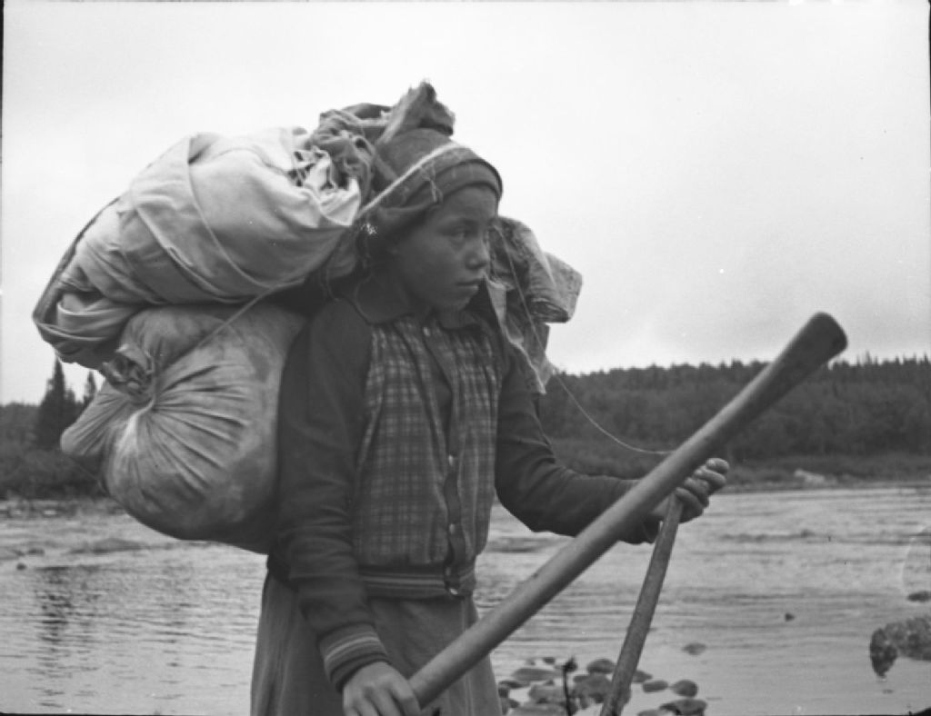 Philomène André, fille de Mathieu André de Sept-ïles, rencontrée au lac Sandgirt en compagnie de son père, Août 1943, Archives nationales à Québec, Fonds Ministère de la Culture et des Communications, (03Q,E6,S9,P336), Paul Provencher.