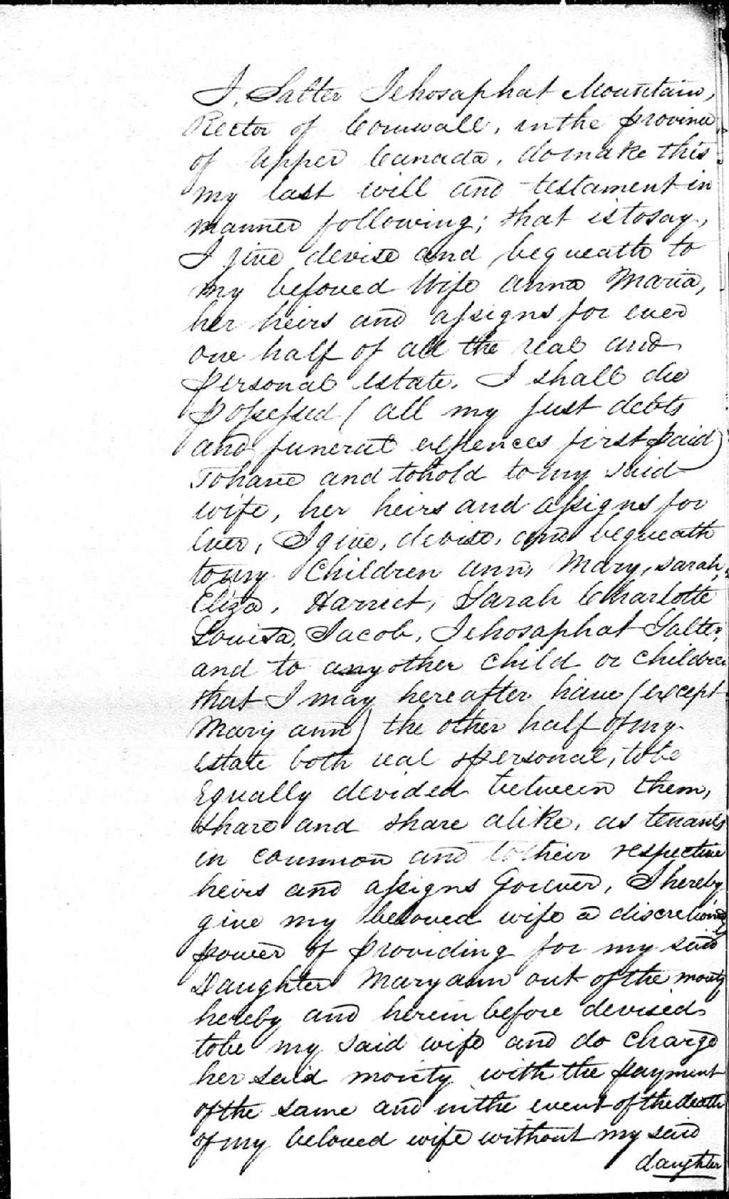 - Documents relatifs à la succession de Jehosaphat Mountain dont, entre autres, ses testaments et son état de compte avec John Torrance, 1816-1835