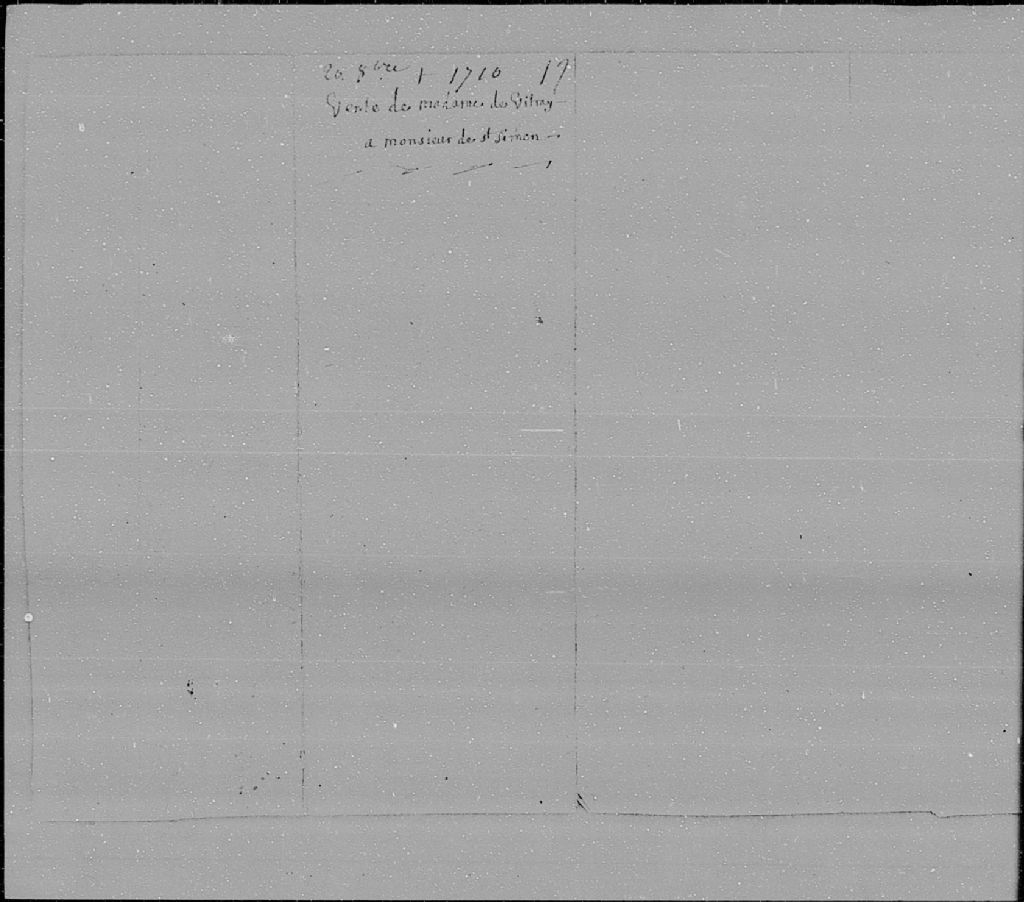 Document faisant état d'une vente d'une maisson à l'île d'Orléans, faite par madame Charlotte Chrétien, veuve de monsieur Vitray à monsieur de Saint-Simon, 20 octobre 1710