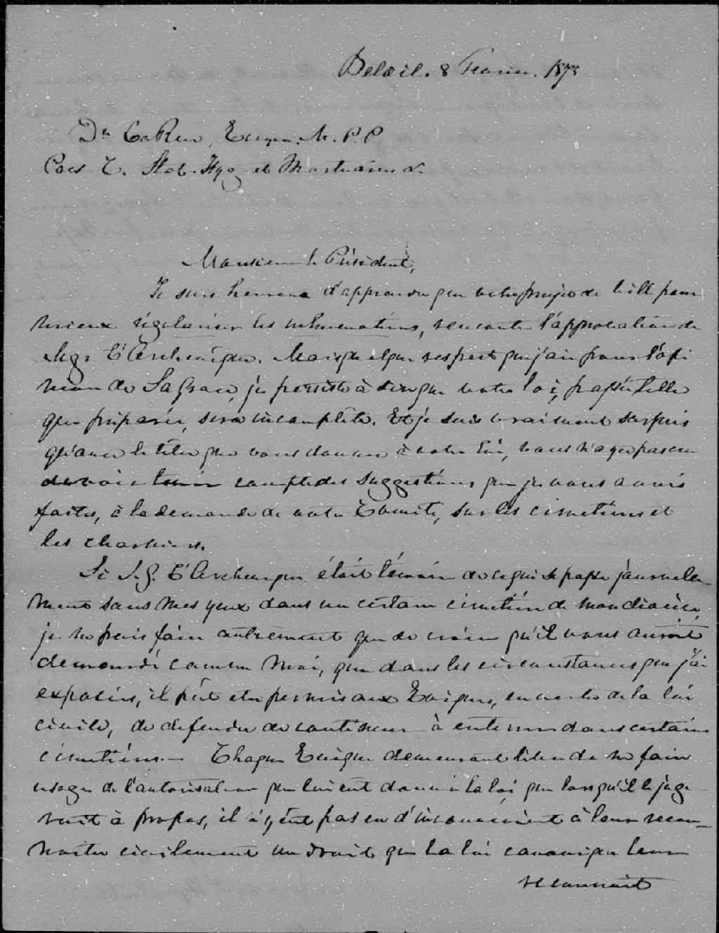 - Lettre de monseigneur Charles Larocque au docteur Hubert Larue, Saint-Hyacinthe, 8 février 1875