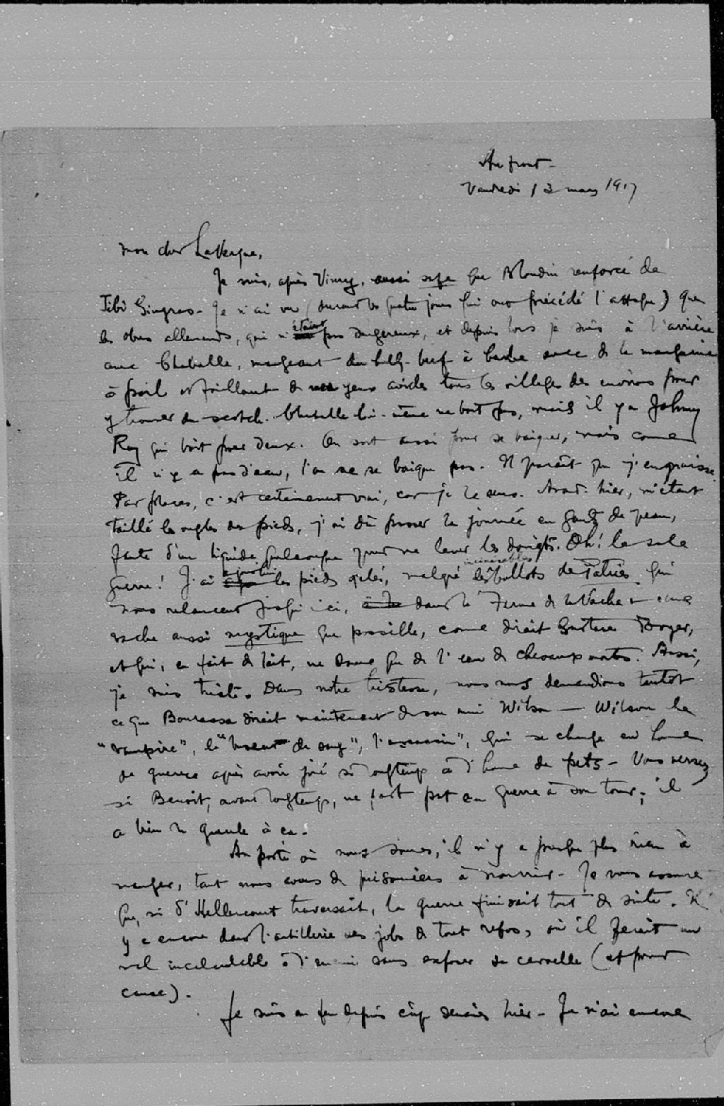 Lettre de Olivar Asselin à monsieur Arnaud Lavergne, 13 mars 1917