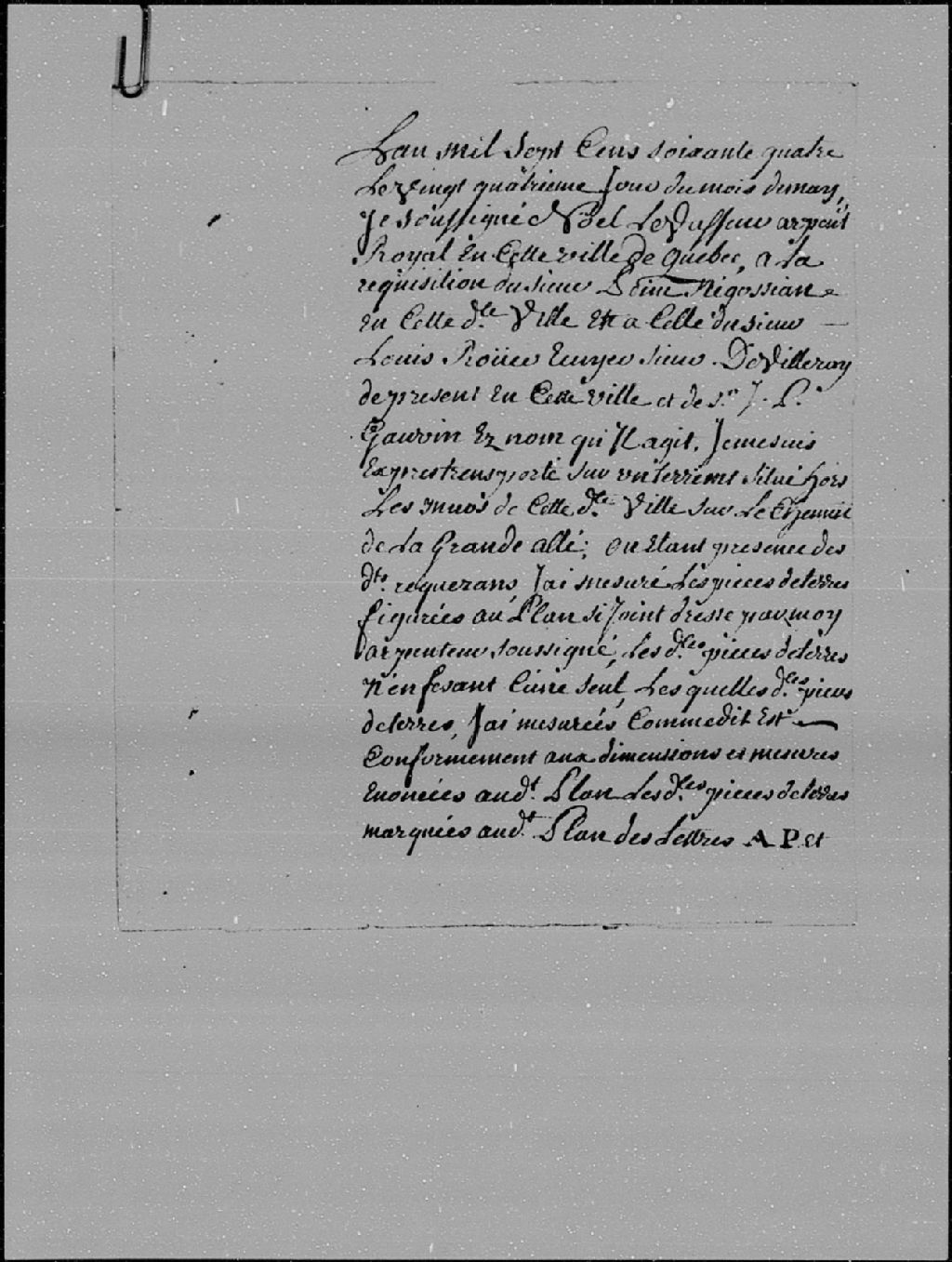 Copie d'un procès-verbal d'arpentage fait par Noël Levasseur, arpenteur, 24 mai 1764
