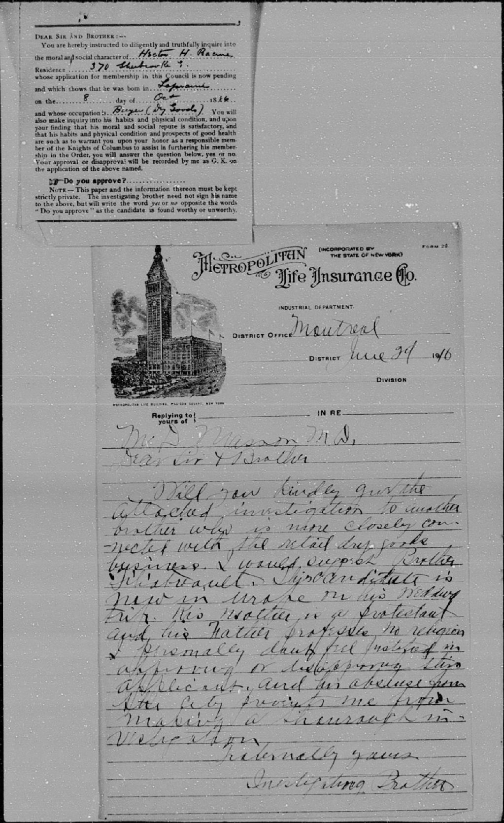 Metropolitan Life Insurance Company, 1910, Archives nationales à Montréal, Collection des petits fonds et collections d'archives manuscrites d'origine privée, (06M,P1000,D331).