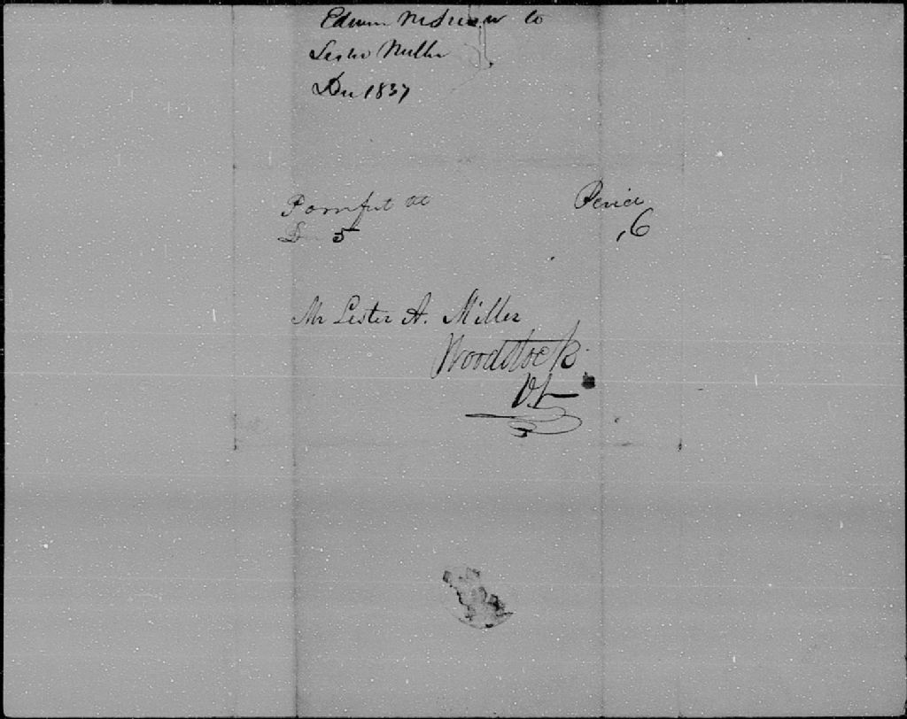 - Lettre de Edwin-M. Snow à Lester-A. Miller, de Woodstock, concernant la Rébellion de 1837; Pomfret, 5 décembre 1837