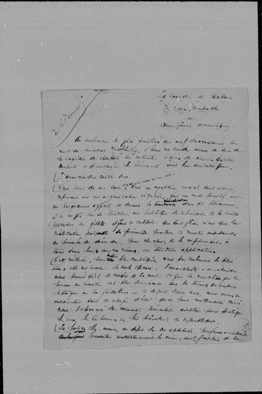 - Textes manuscrits de Henri-Gaston De Montigny intitulés «Le Fouet», «La tragédie de Buffalo et les vrais coupables», «Comment devenir caricaturiste» et «Comment devenir caricaturiste, des illusions»; texte manuscrit incomplet signé S. Mark; [ca 1901]