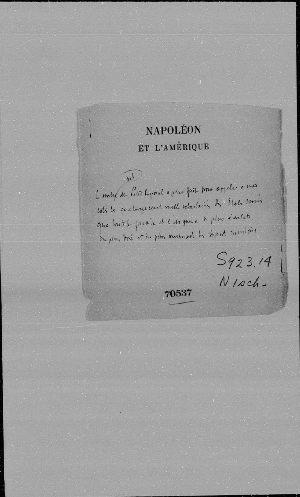 - Manuscrit d'un texte intitulé «Napoléon et l'Amérique», auteur non identifié, [ca 1900]
