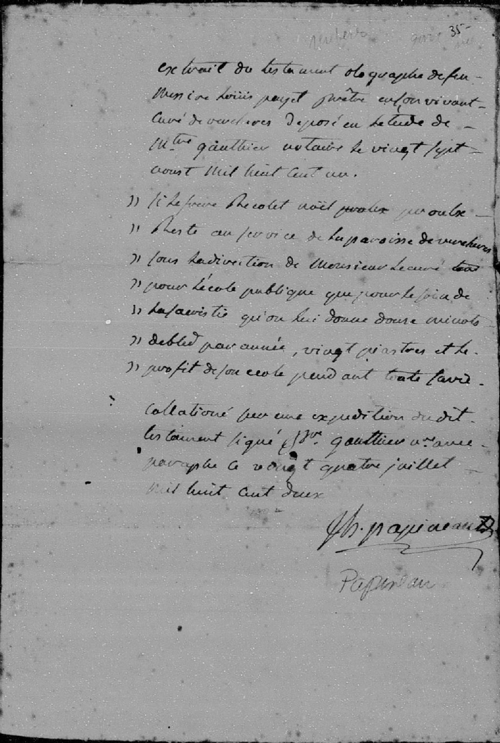 Louis Payet, 1801, Archives nationales à Montréal, Collection des petits fonds et collections d'archives manuscrites d'origine privée, (06M,P1000,D376).