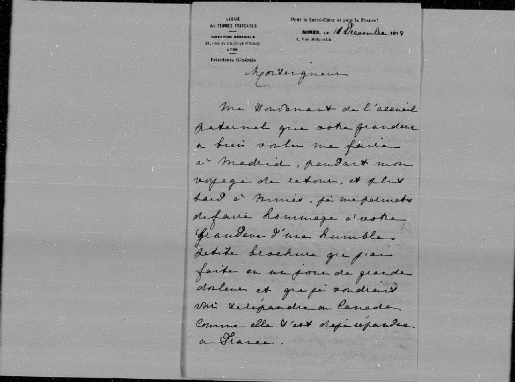 - Lettre de la comtesse de Saint-Laurent à Monseigneur Bruchési, de Montréal; Nîmes, 11 décembre 1918 et 27 janvier 1919
