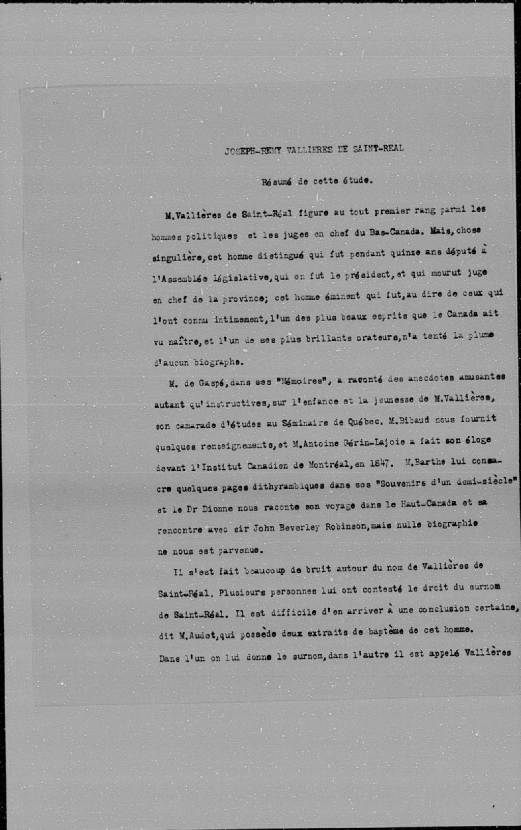 - Biographie de Joseph-Rémy Vallières de Saint-Réal intitulée «Joseph-Rémy Vallières de Saint-Réal: Résumé de cette étude», [ca 1900]