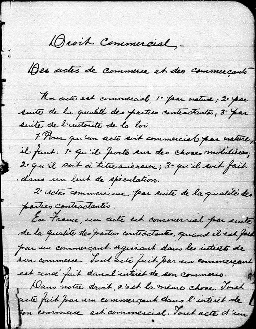 - Cahier de notes de Wilfrid Chicoyne intitulé «Droit commercial», Saint-Hyacinthe, [ca 1900]