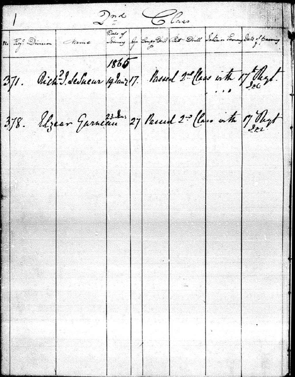 Registre des dossiers d'élèves de 1ère et 2e classe d'une école militaire à Québec comprenant le nom, la division, l'âge, la date d'entrée, la notation et le classement de ces élèves, 29 novembre 1864 - 10 mars 1883