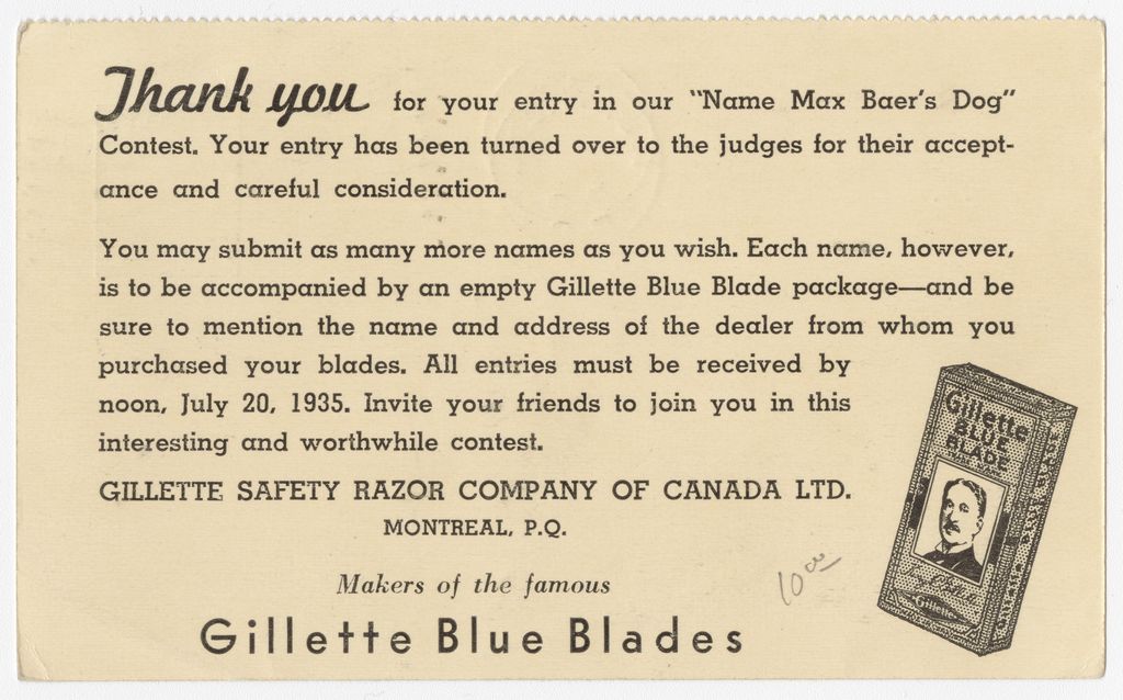Gillette Blue Blades : Thank you for your entry in our "Name Max Baer's Dog" Contest /