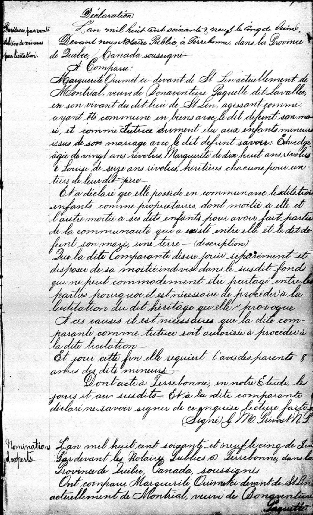 - Livre contenant des transcriptions d'actes notariés faites par les notaires Eustache Larose et Gédéon-Mélasippe Prévost, 5 juin 1869 - 18 octobre 1895