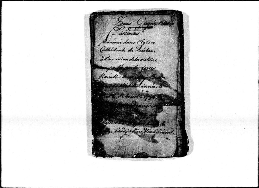 Discours prononcé dans l'église cathédrale de Québec à l'occasion de la victoire remportés par les forces navales de Sa Majesté britannique sur la flotte française dans la Méditerranée, les 1er et 2 août 1798, par Joseph-Octave Plessis, curé de Québec, coadjuteur, viciare général, 10 janvier 1799