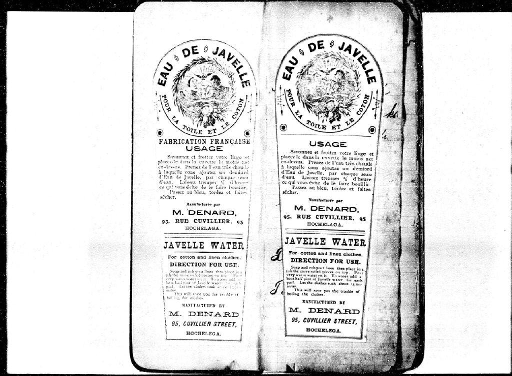 - Collection d'étiquettes d'eau de javelle de la fin du XIXe siècle, [ca 1897]