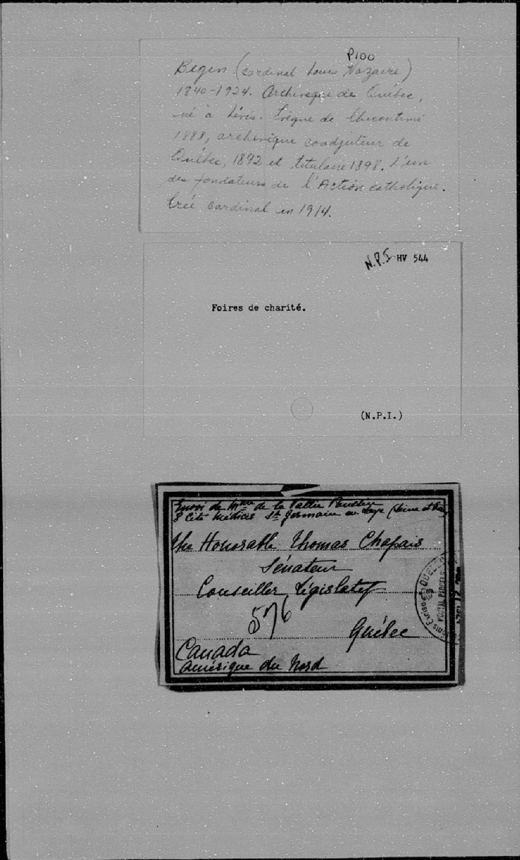 Thomas Chapais, 1882-1929, Archives nationales à Montréal, Collection des petits fonds et collections d'archives manuscrites d'origine privée, (06M,P1000,D97).