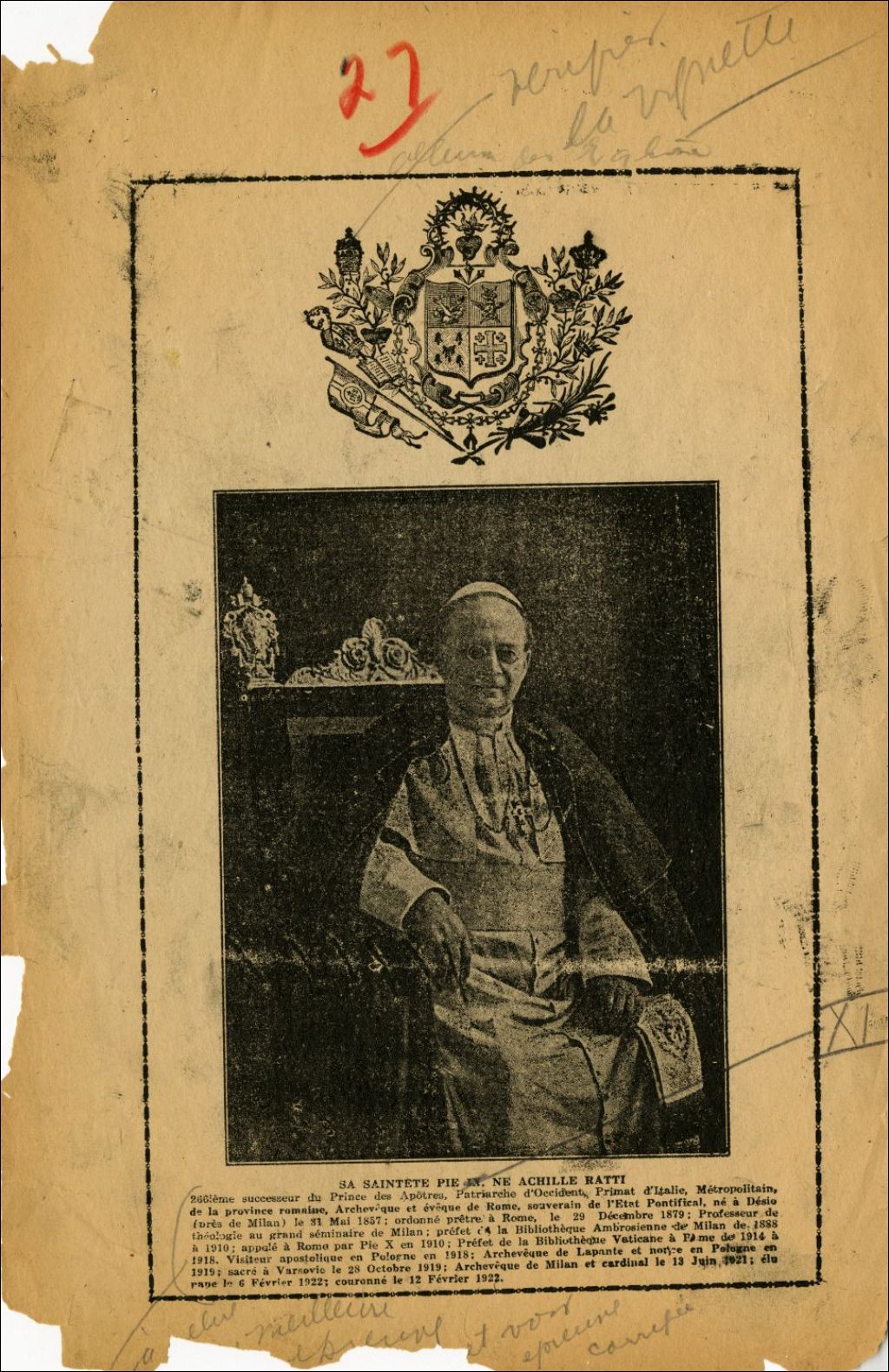 Sa Sainteté Pie IX, né Achille Ratti, [1900], Archives nationales à Montréal, Collection Félix Barrière, (06M,P748,S1,P1049), Barrière, Félix.