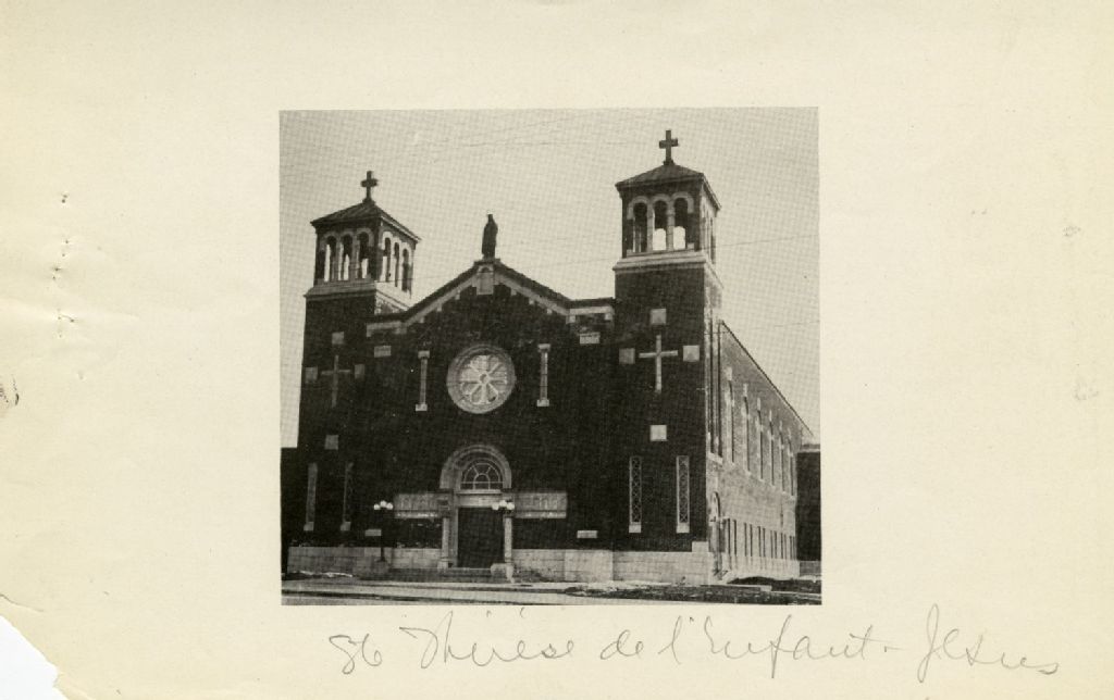 Église de Sainte-Thérèse-de-l'Enfant-Jésus de Montréal, [1930], Archives nationales à Montréal, Collection Félix Barrière, (06M,P748,S1,P1538), Barrière, Félix.